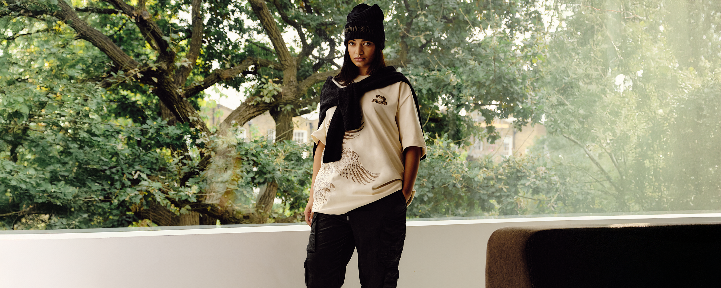 LEATHER APPLIQUE KNIT SWEATSHIRT
