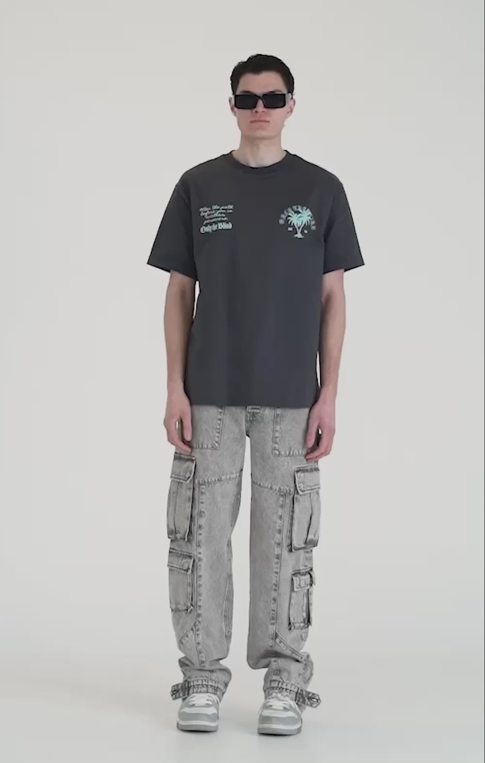 Het kledingstuk heeft een rechte pasvorm en is gewassen om een unieke grijze tint te creëren. De cargo stijl met meerdere zakken geeft een moderne draai aan het klassieke denim jeans silhouet, waardoor het veelzijdig is voor verschillende gelegenheden en stijlen.