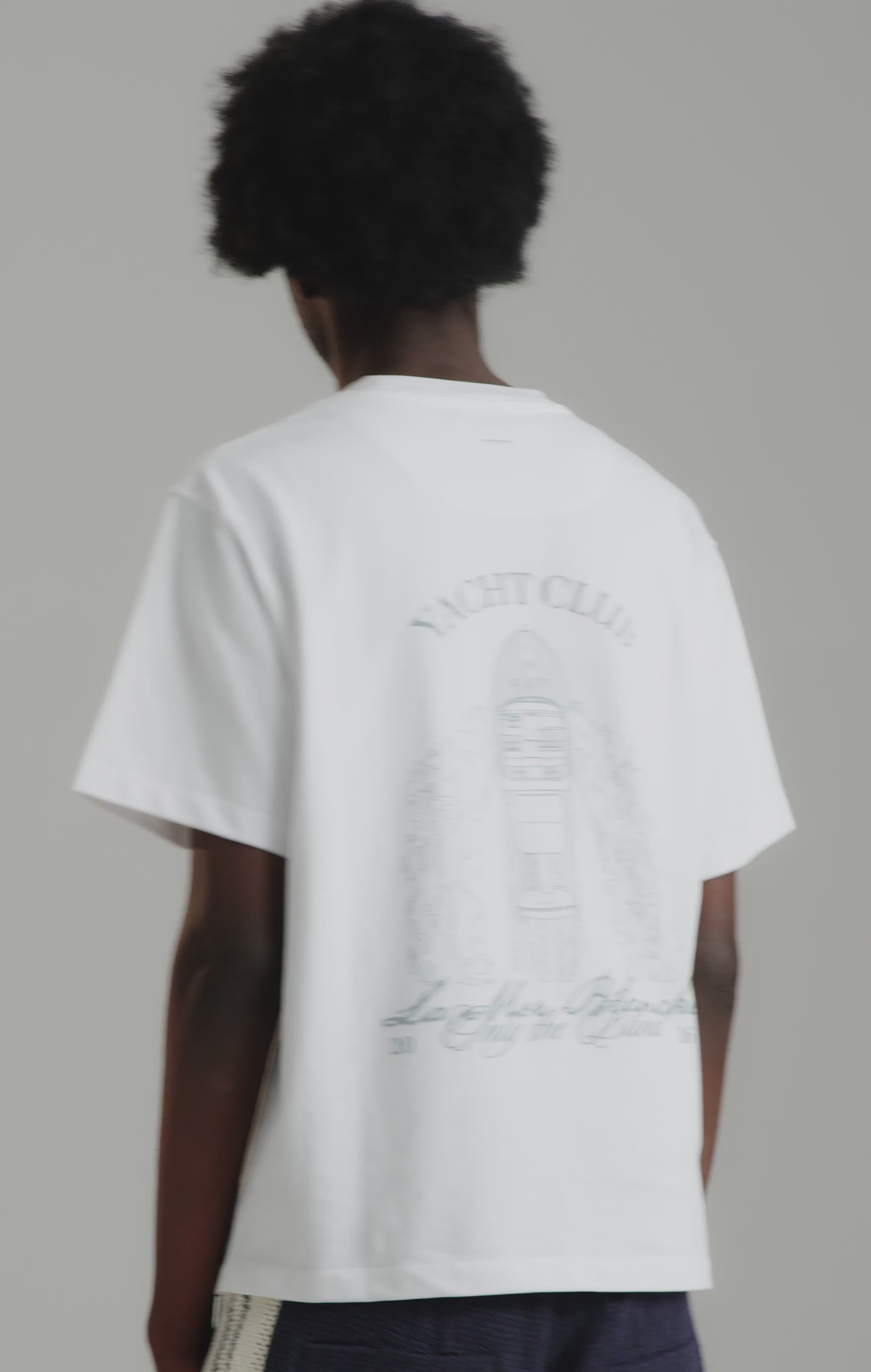 The back features the full Yacht Club composition with La Mer Blanche and Only the Blind detailing, while the front carries a scaled-down chest graphic for a more understated finish. Clean in palette yet rich in detail, this piece balances minimalism with craftsmanship - a modern Riviera uniform, refined through illustration and texture.